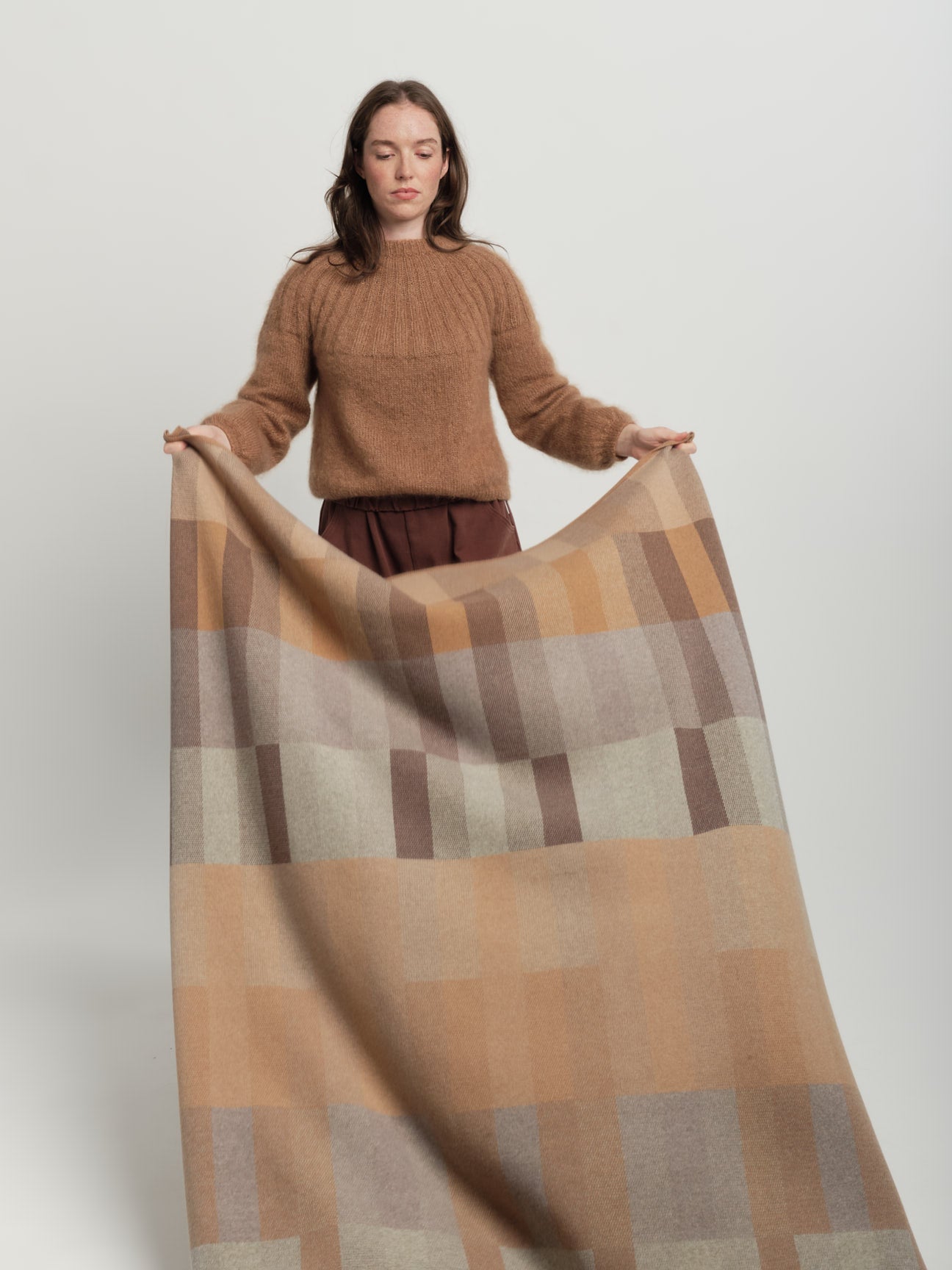 Yarns used in this colour-way: Barley, Hazelnut, Fawn, Peat, Birch, Dove.