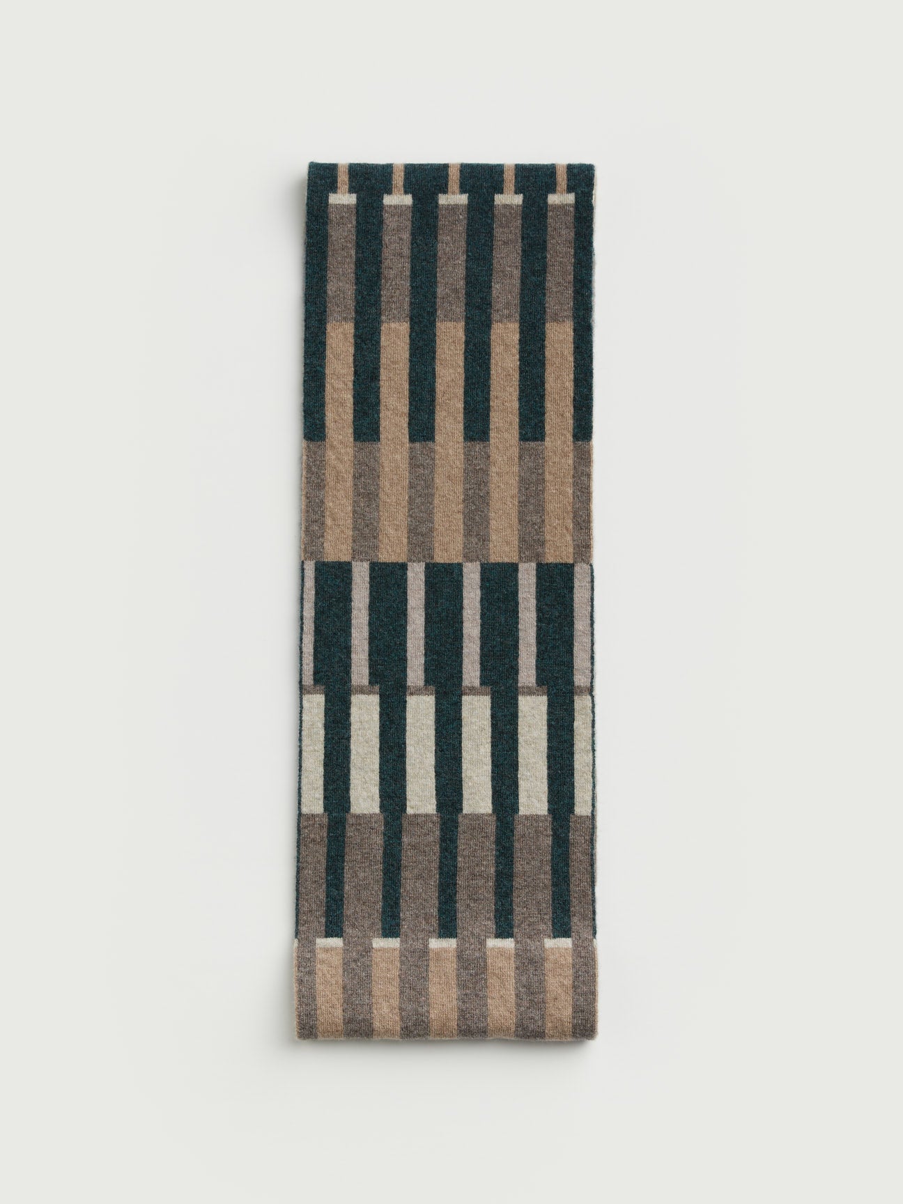 Constructed in a reversible jacquard, so the colours are swapped on the reverse. This makes for a subtle shift in emphasis and colour from one side to the other.