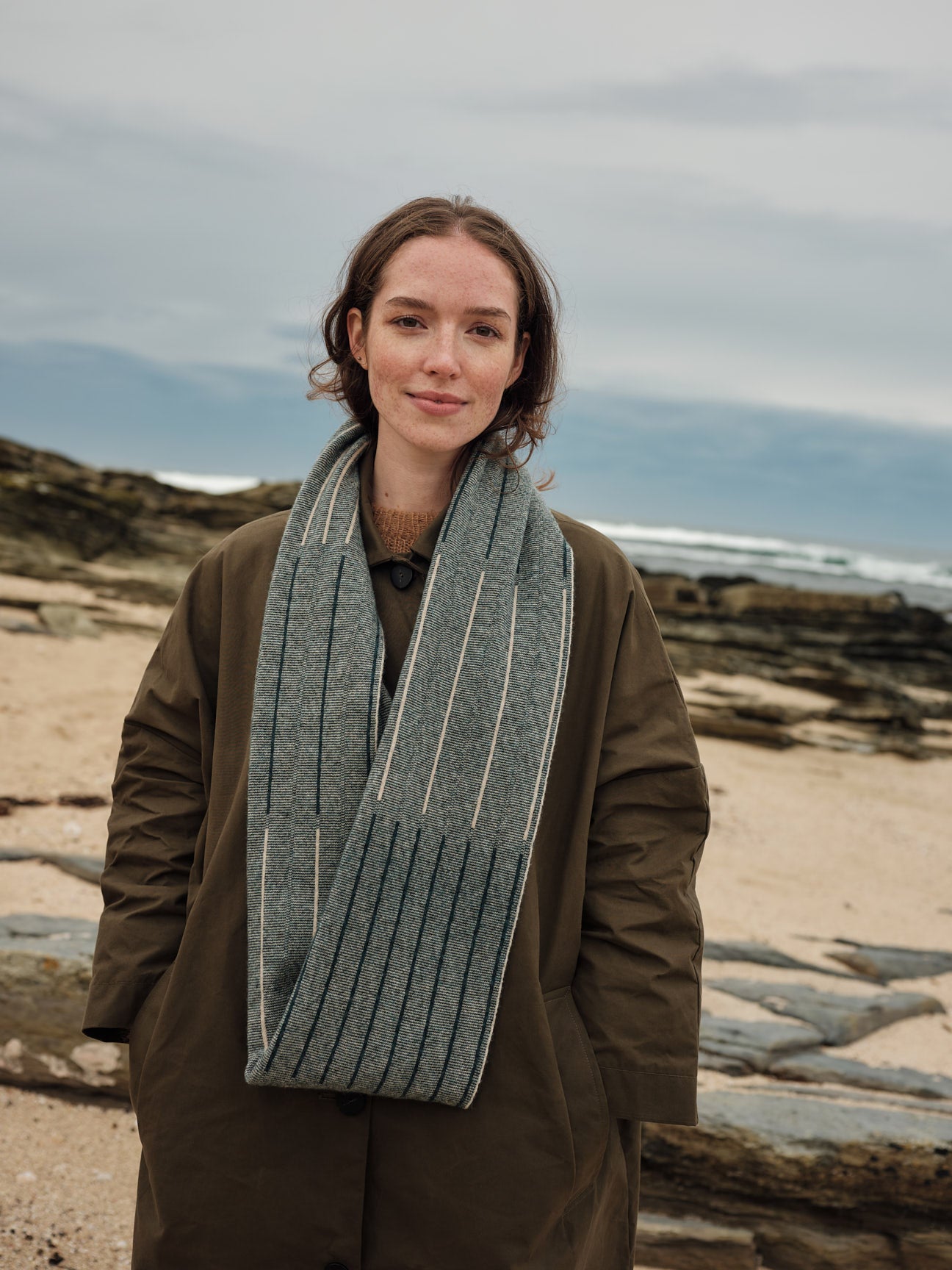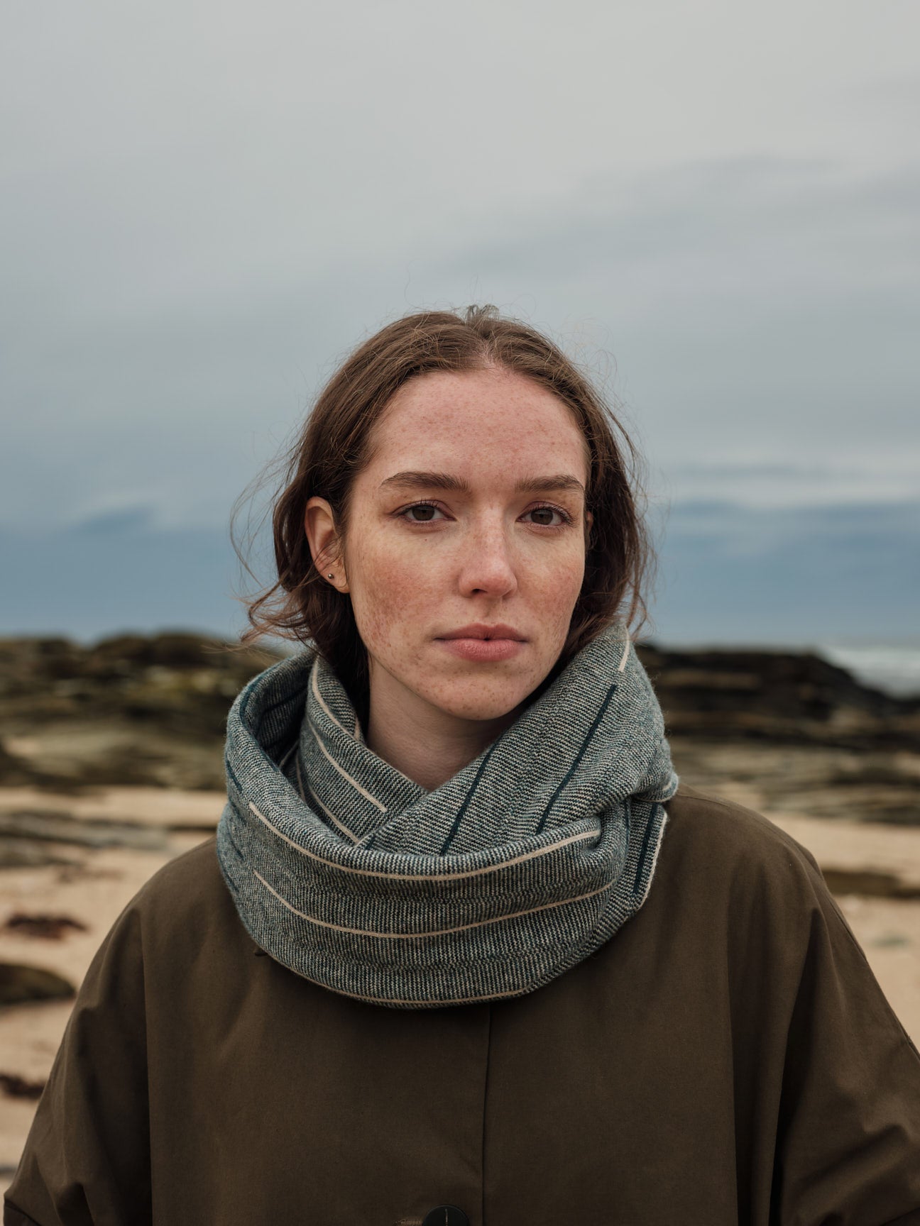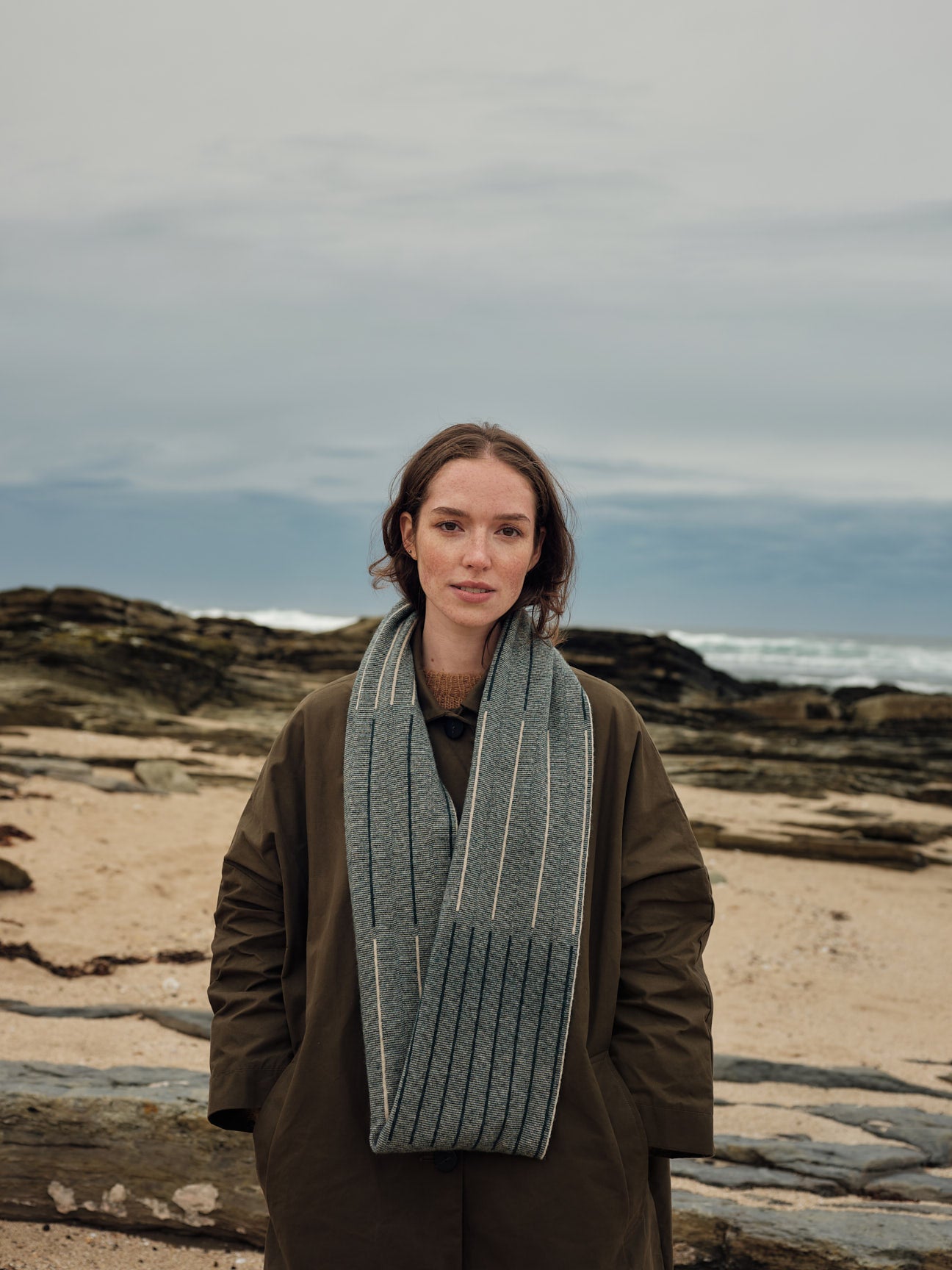 A larger circle scarf than our ever popular “Harbour” design, but knitted in the same super fine, reversible jacquard.