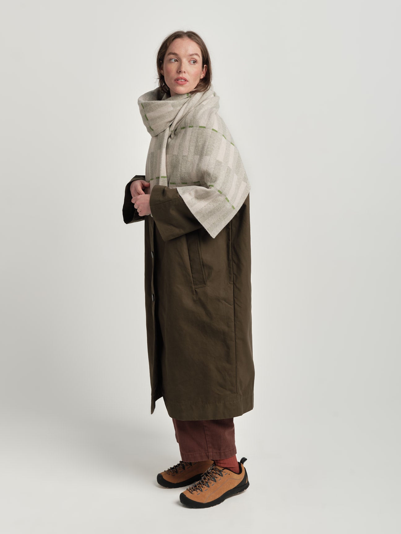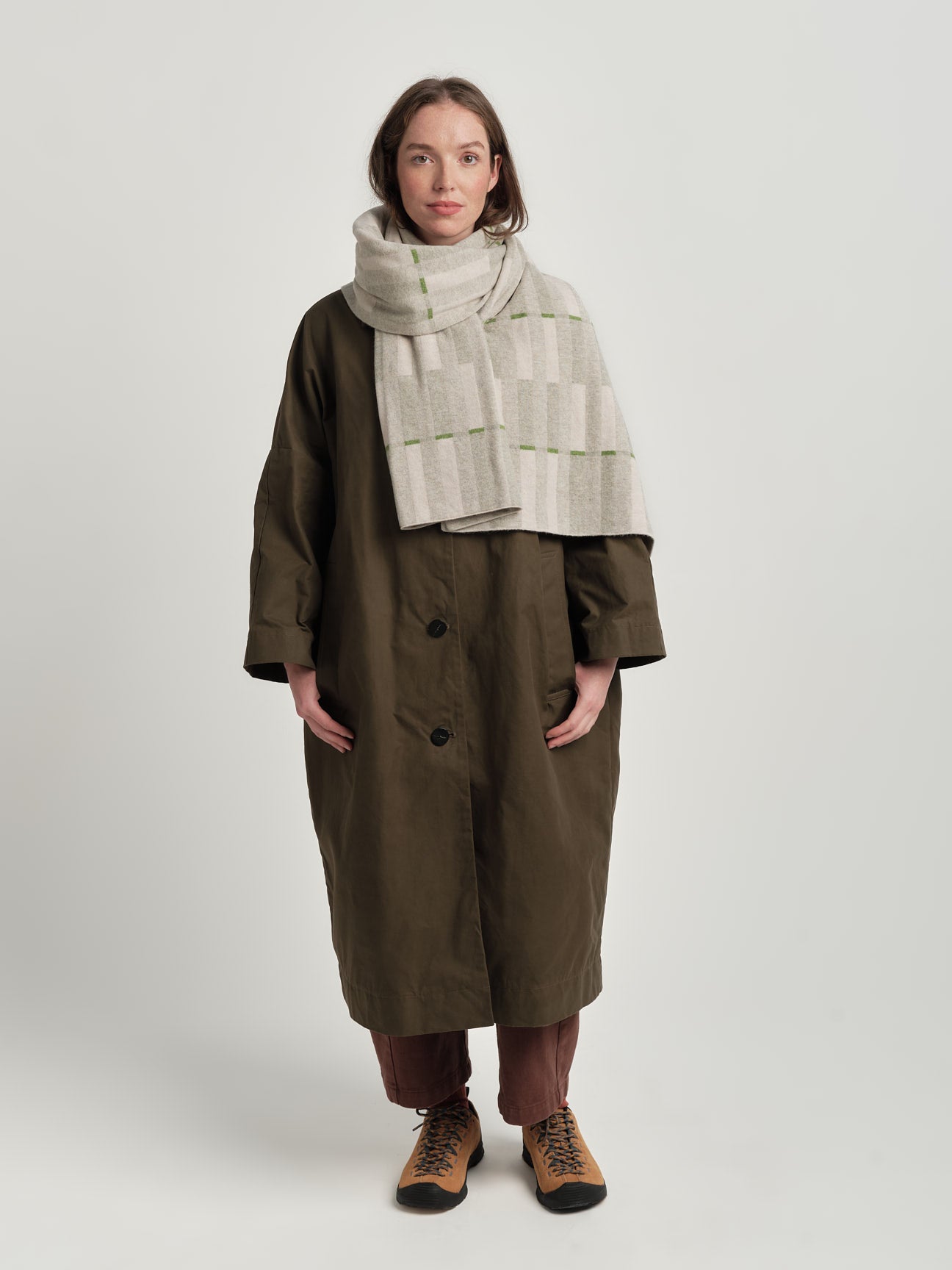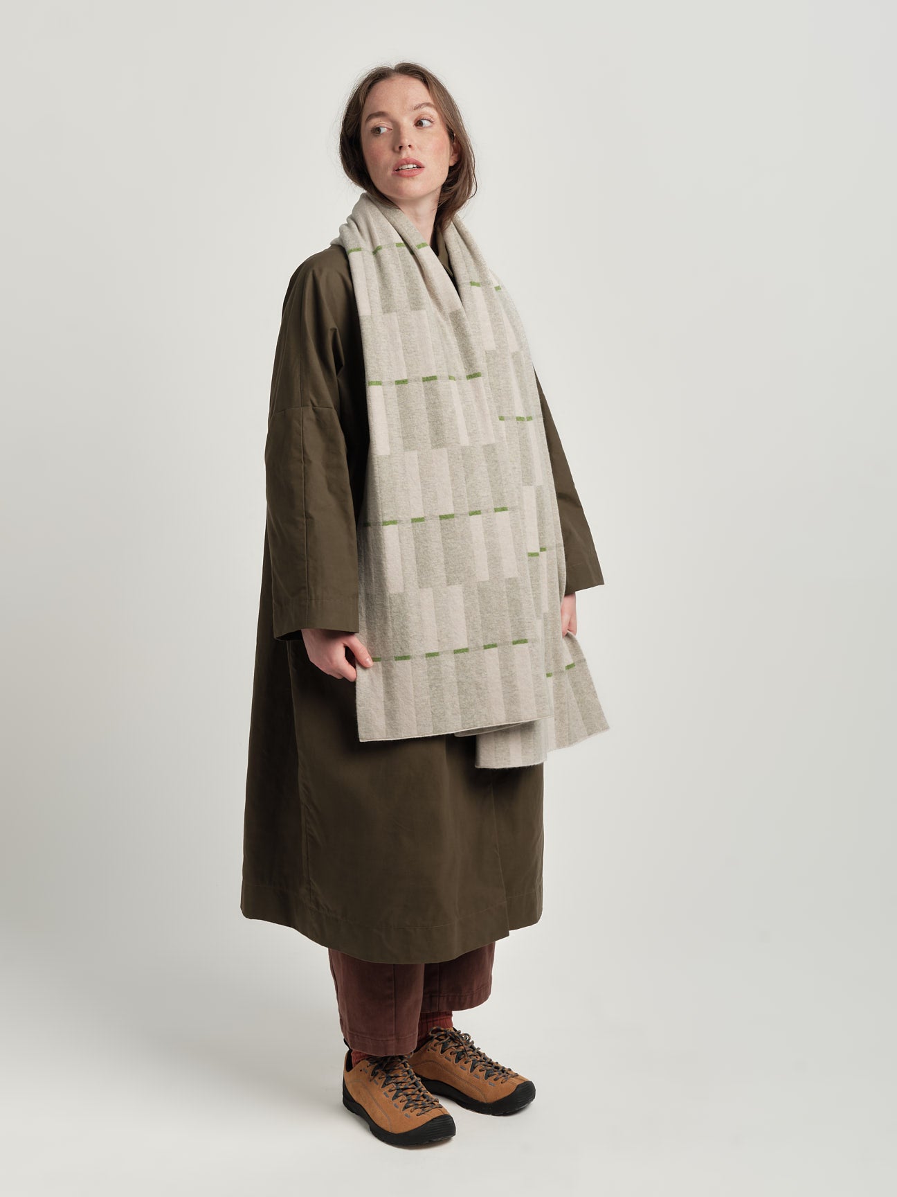 Constructed in a reversible jacquard, so the colours are swapped on the reverse. This makes for a subtle shift in emphasis and colour from one side to the other.